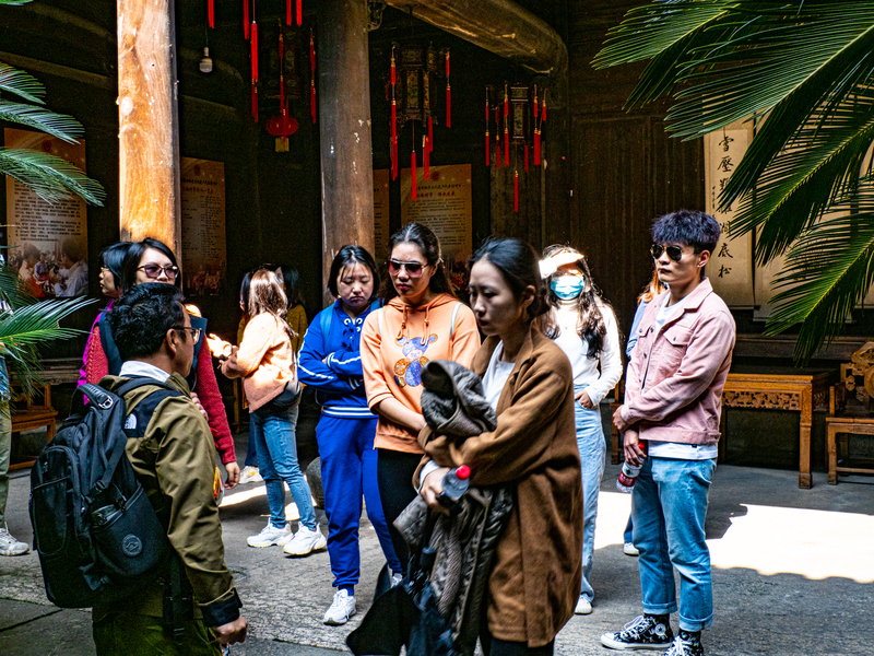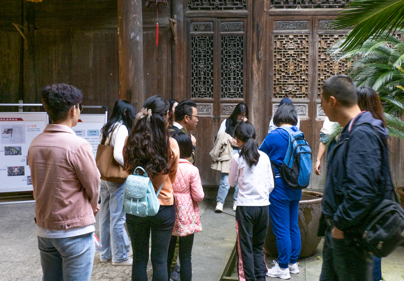 活动通知一经发出,便吸引了众多老师的关注,大家纷纷携亲属、孩子报名。一早,阳光正好,微风阵阵。经过了一个多小时的车程,老师们抵达此行第一站——桐庐深澳。深澳古镇江南传统村落的风貌依存,兼具历史和文化价值,古村濒应家溪而建,因其“坎儿井式”的排水系统著称于世……斑驳的老墙、曲折的古街,阳光细碎的散落在卵石小路上。老师们信步其中,随行的家属小朋友们更是兴致勃勃,尽享这秋日的时光。