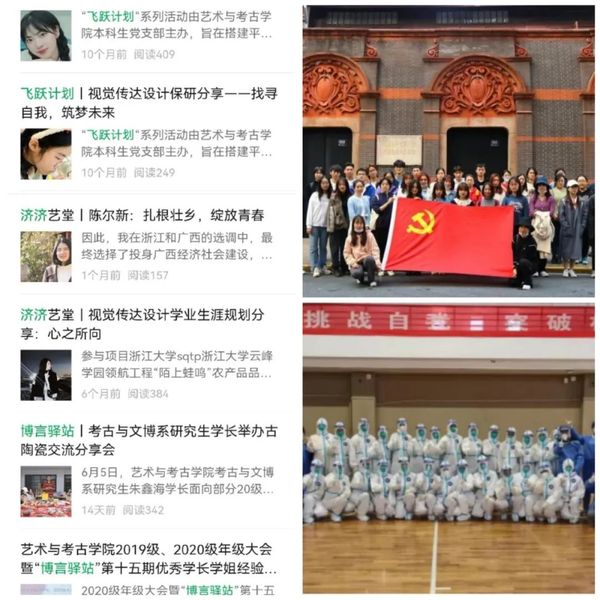在榜样引领中传承“学风”。线上线下相结合,打造“飞跃计划”品牌活动;策划“济济艺堂”“见字如晤”系列推文24期,发挥优秀学子引领、辐射作用;组织“博言驿站”优秀学姐学长分享会,为低年级同学答疑解惑、引导生涯规划。