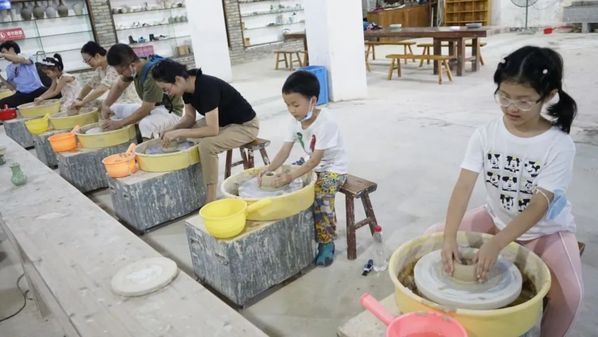 第二日上午来到位于龙泉的中国青瓷小镇。这是全国唯一以青瓷为主题的国家AAAA级旅游景区,也是“浙江省非物质文化遗产经典旅游景区”、“浙江省首批工业旅游示范基地”。景区共有青瓷寻踪剧场、青瓷体验坊、龙渊古迹、国际陶艺村几大景点,而青瓷寻踪剧场更是分为“瓷之国、瓷之旅、瓷之史、经典影院、百年龙泉”五个篇章全面透彻的向公众传达龙泉青瓷的发展历史。在讲解员的带领下,大家参观了传统的制瓷工坊,深入了解龙泉青瓷的制作工艺,更是在参观结束后,亲自动手体验了拉坯、捏陶等制作过程。